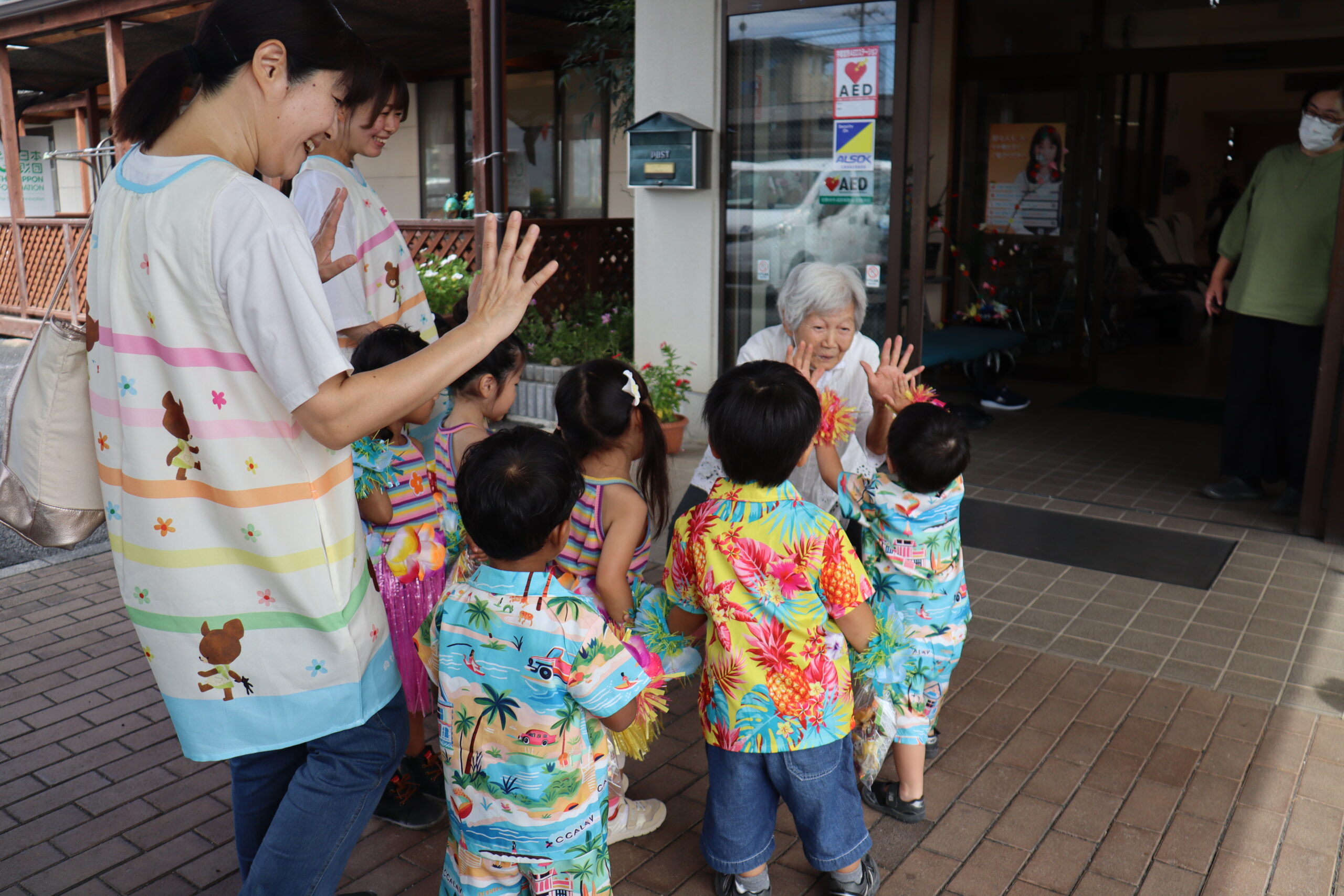 踊り終わると電車になっておじいちゃん、おばあちゃんたちに握手やハイタッチをして子どもたちのパワーをあげてきました💛また来年遊びに行くので待っていてくださいね!!
