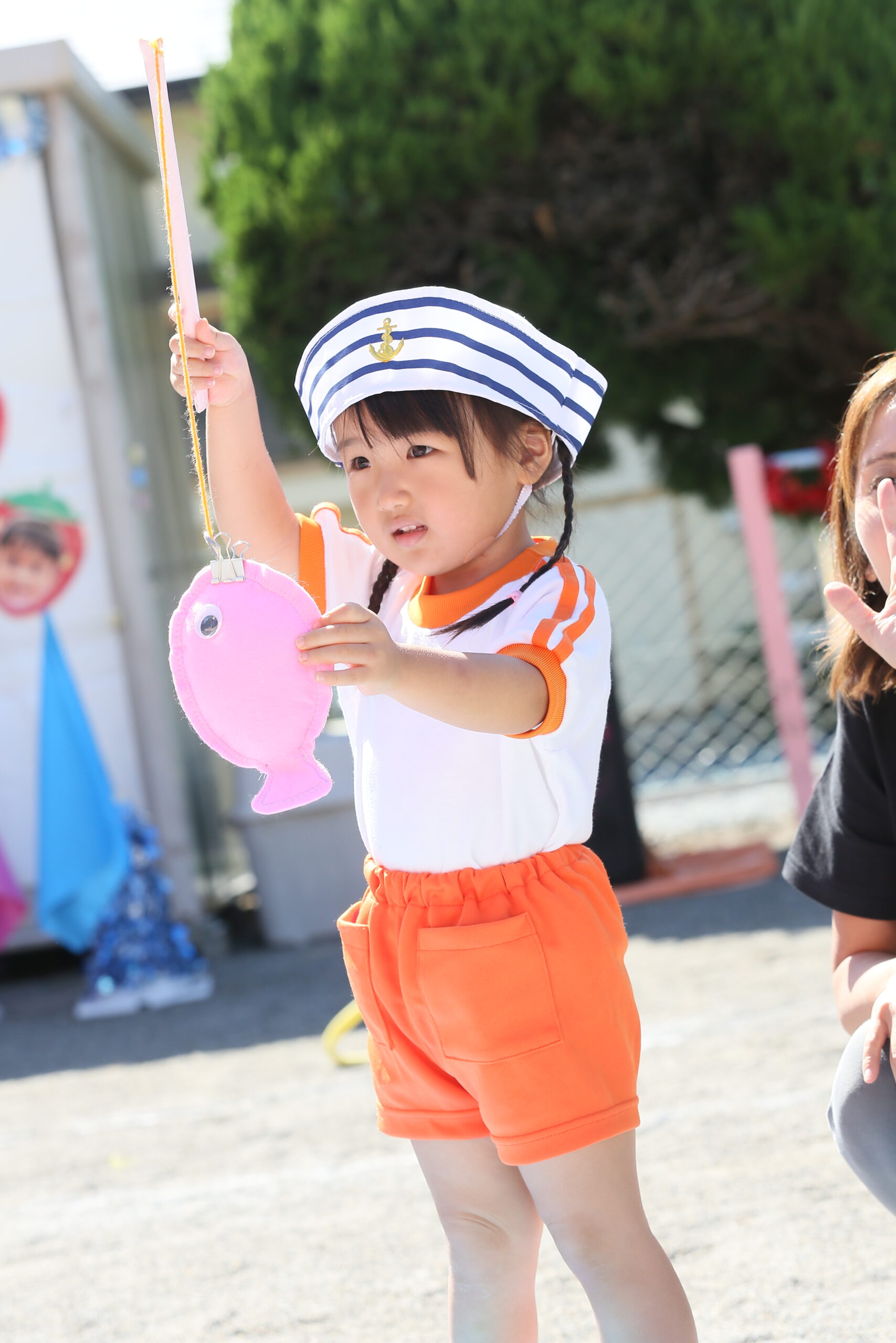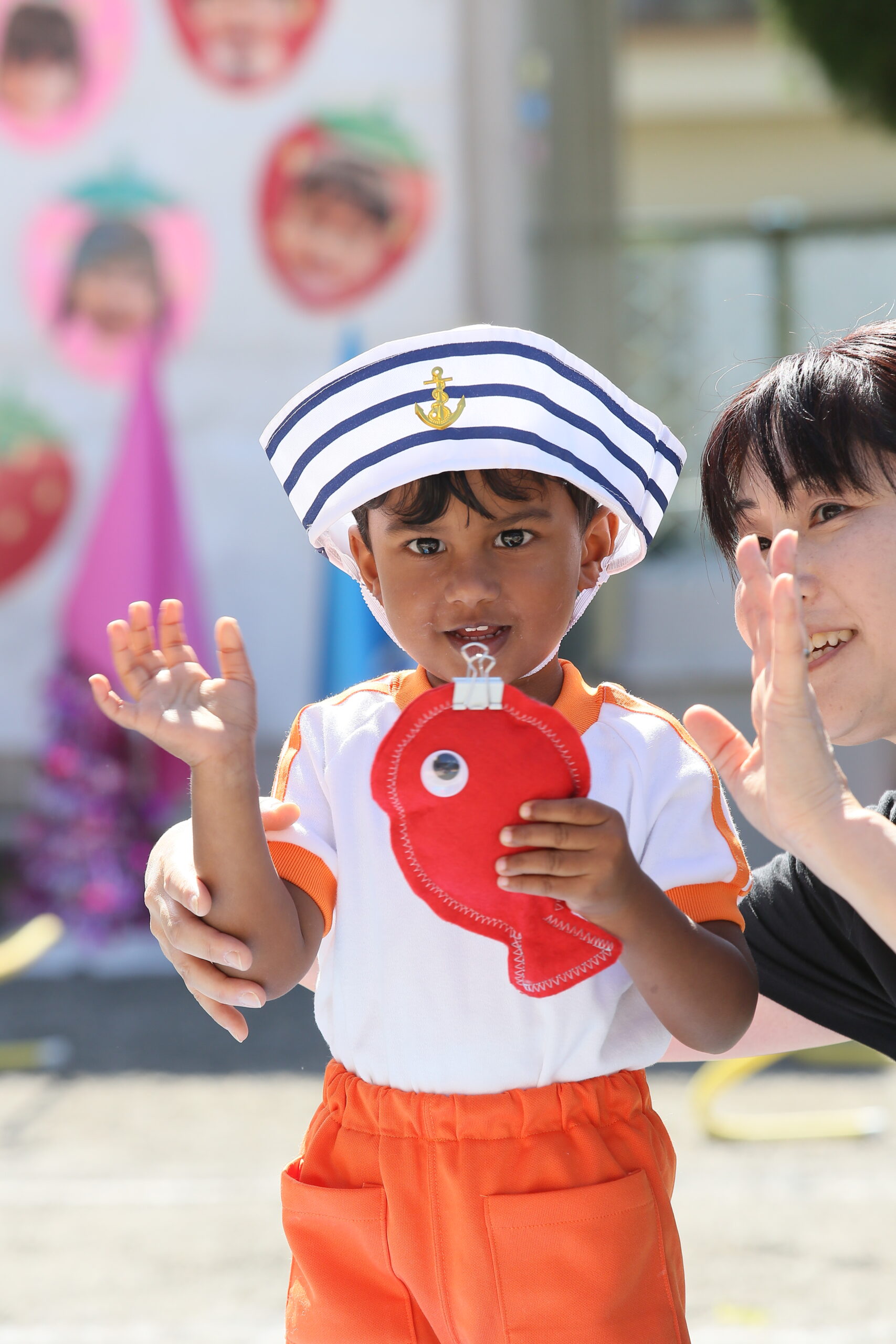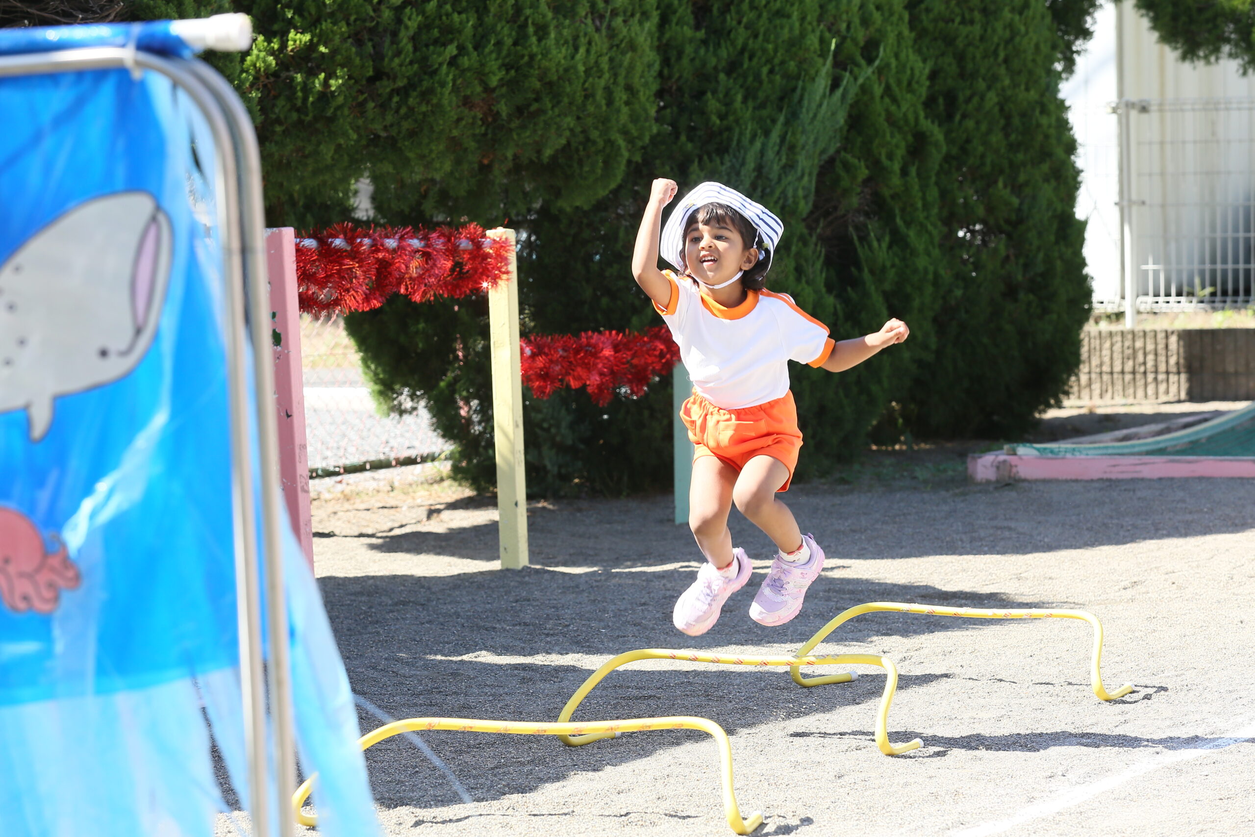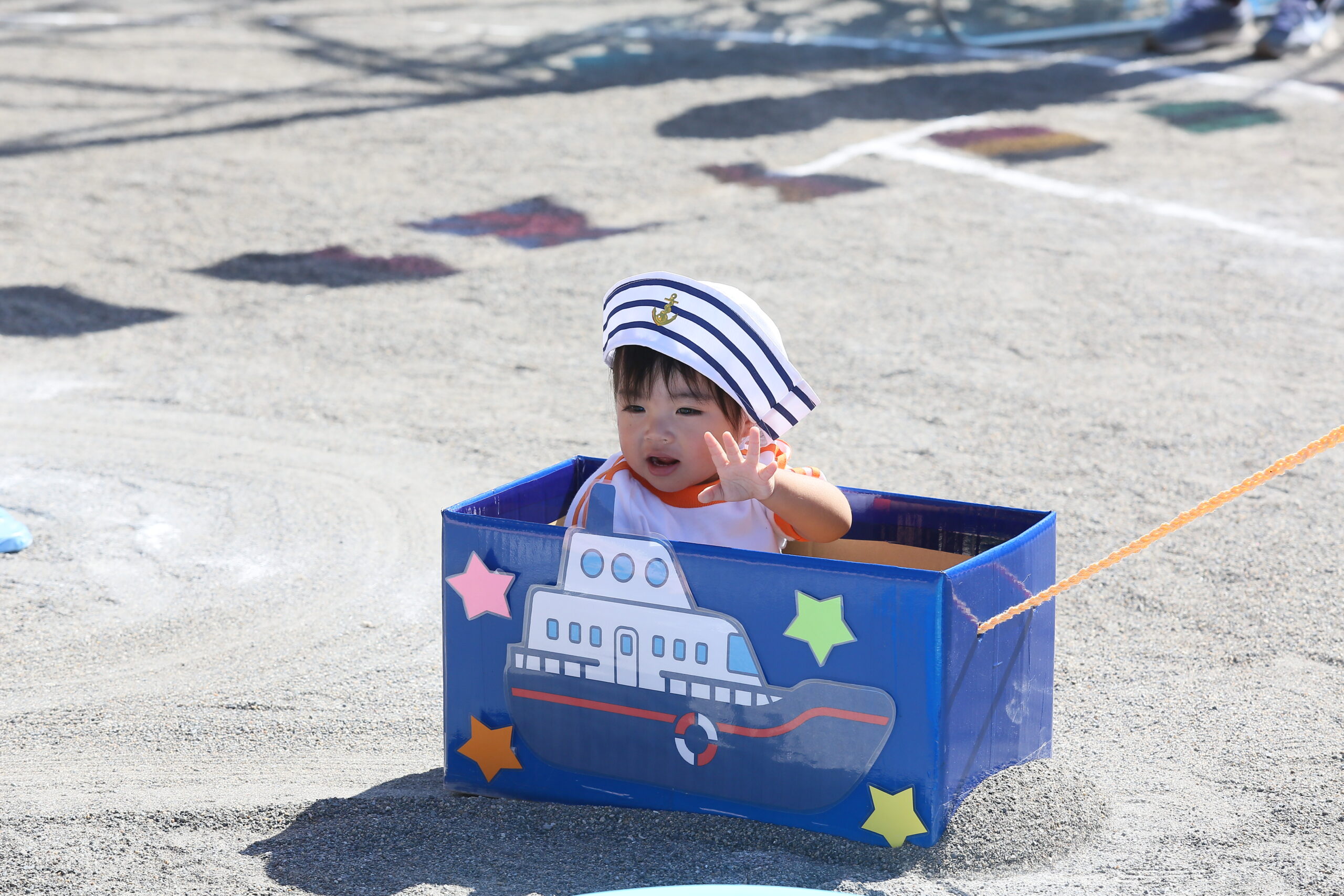 運動会② お知らせ 2025.10.102025.12.01 一つ目の障害走は、ザブザブ海の大冒険です!海のカーテンをくぐったり、船に乗って冒険に出かけます。最後に好きな色のお魚を釣ってゴールです!みんな上手にお魚を釣ることができました✨