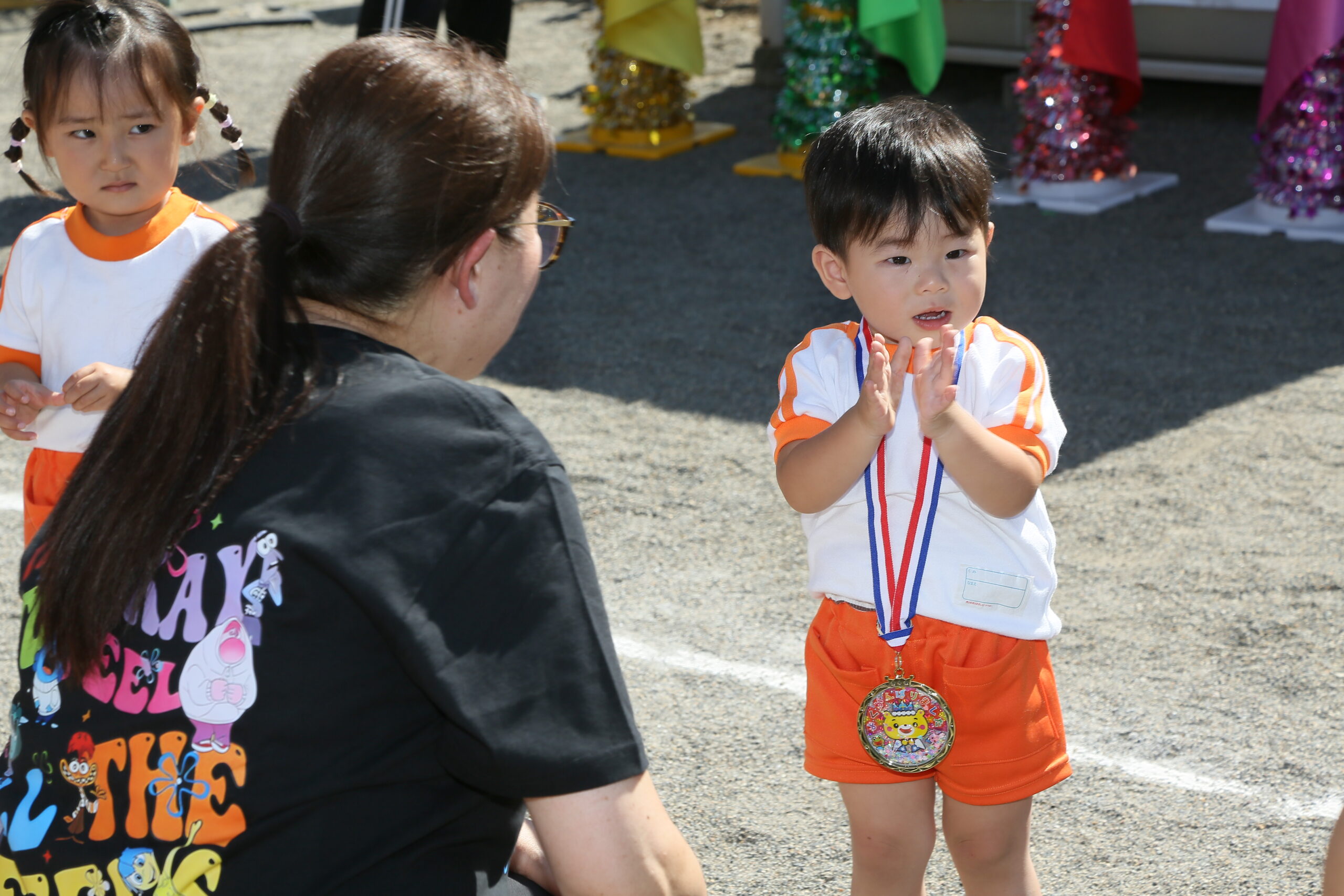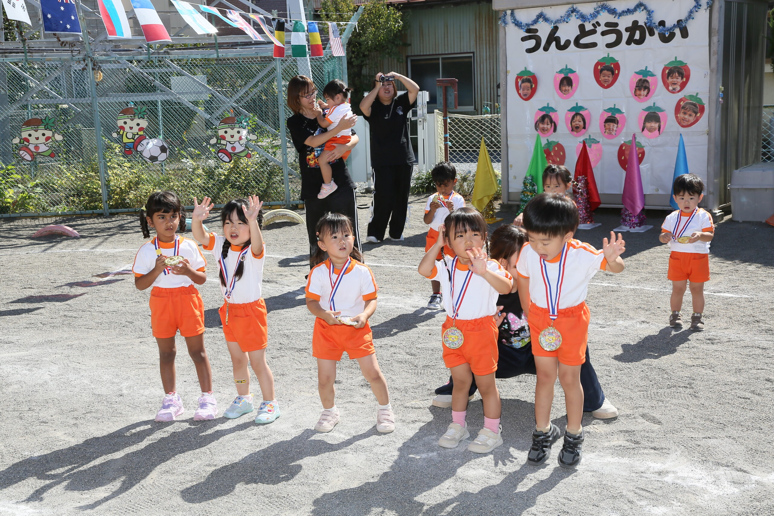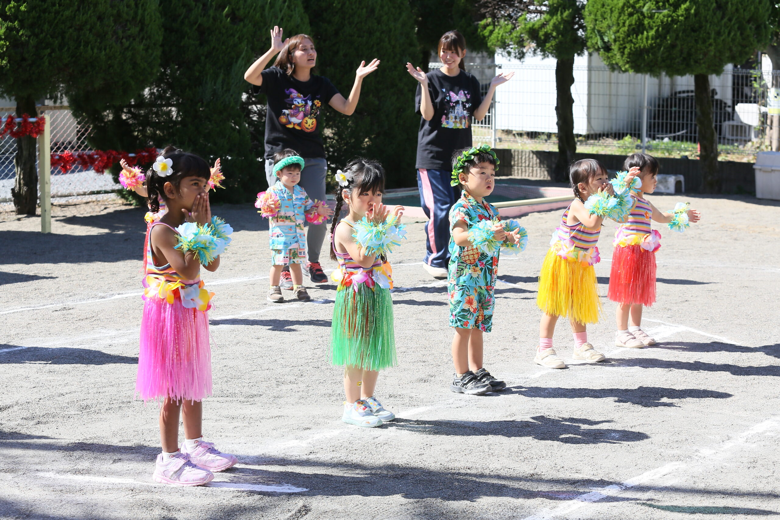 運動会④ お知らせ 2025.10.102025.12.01 ダンスは『アロハ・エ・コモ・マエ』と『ソラソラあおぞら』を元気いっぱい踊ります✨衣装が似合っていて、みんなとってもかわいかったです💛 閉会式では、頑張ったご褒美にピカピカの金メダルをもらい嬉しそうな子どもたちでした!みんな元気いっぱい運動会に参加することができました✨とっても楽しかったね!!