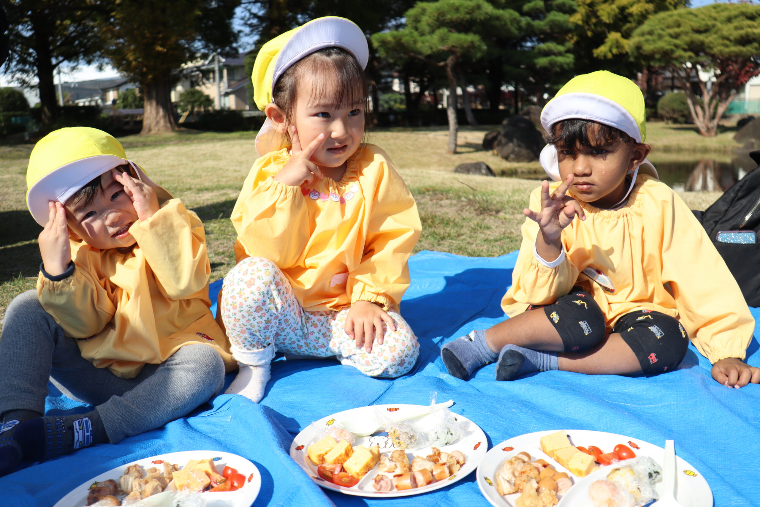 とても良いお天気で青空の下、みんなでお弁当を食べました。ピクニックに大喜びの子どもたちです💛またみんなでお散歩に行きたいと思います。