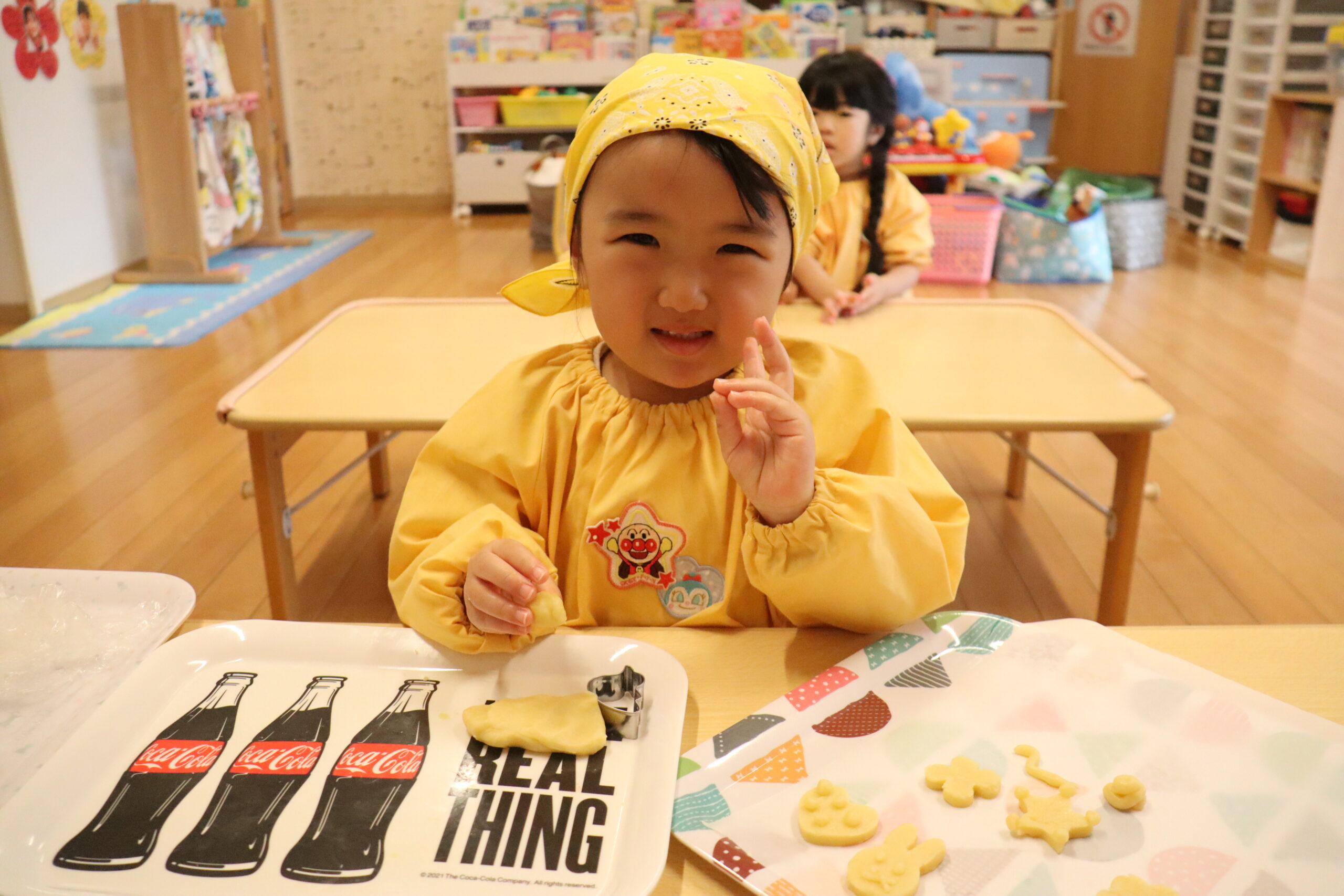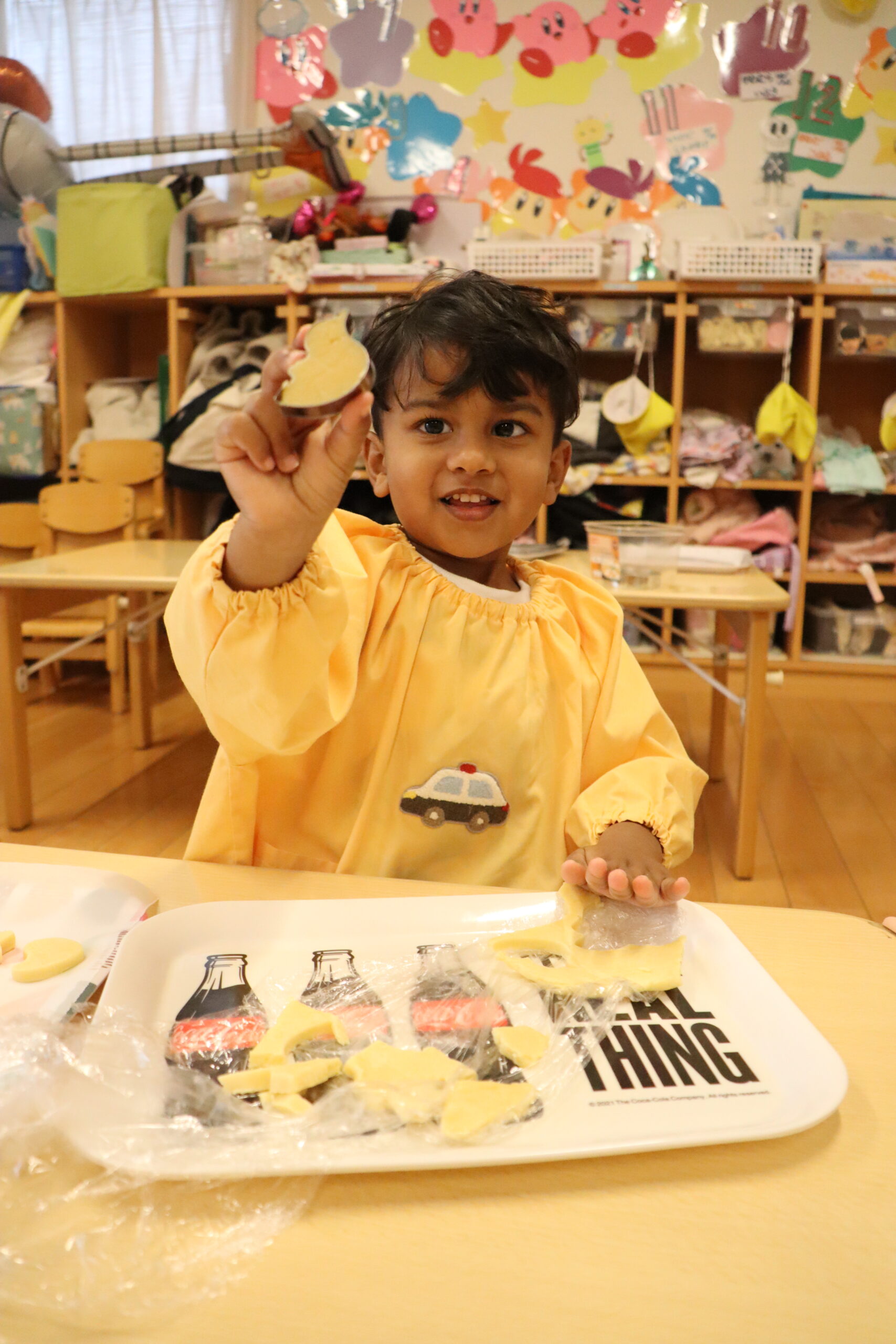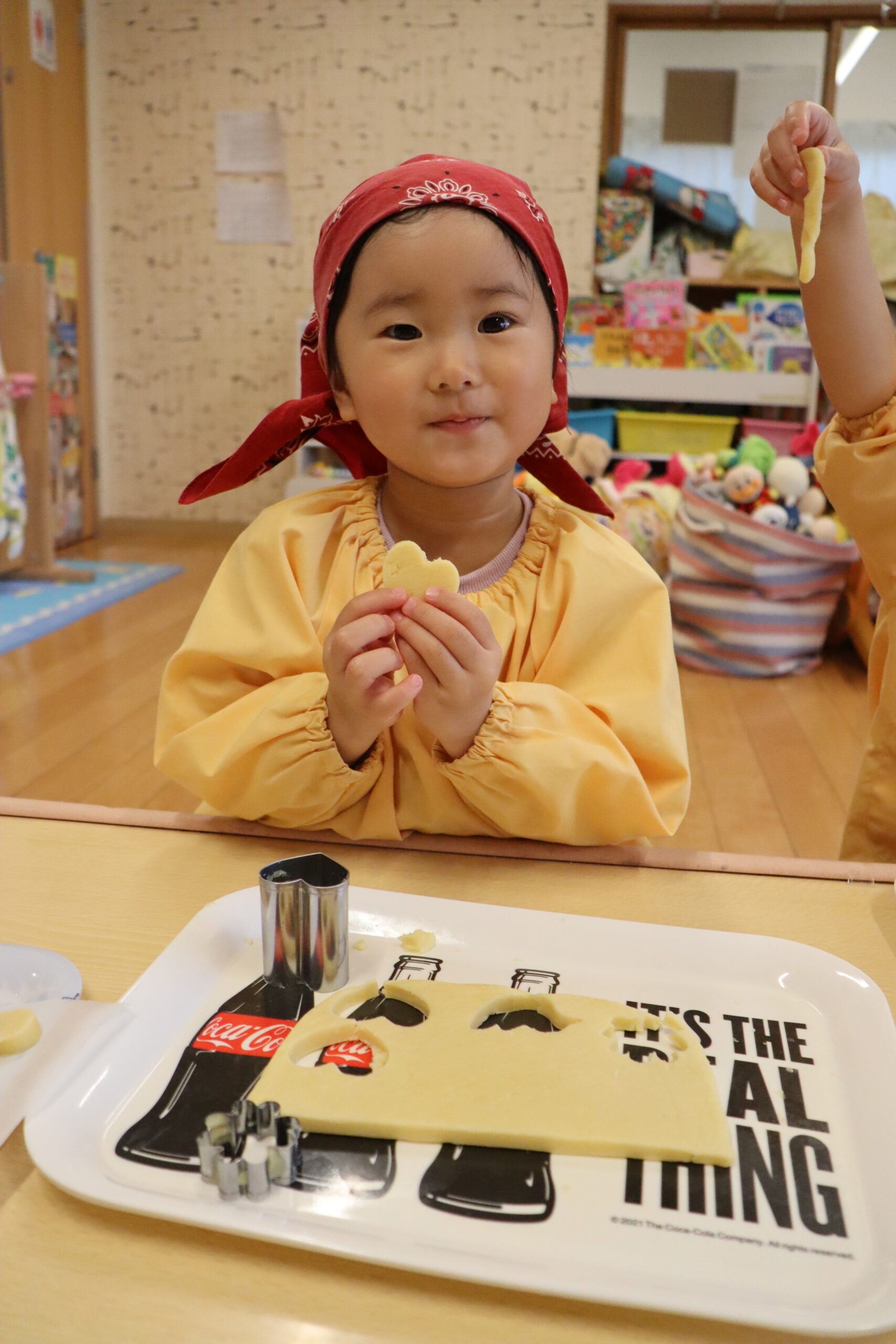 おやつには、自分たちが型抜きをしたクッキーをとっても嬉しそうな表情で、たくさん食べている子どもたちの姿を見ることができました。自分たちで作ったクッキーはとってもおいしかったと思います!!また、みんなで手作りおやつを作って楽しみたいと思いま~す💛